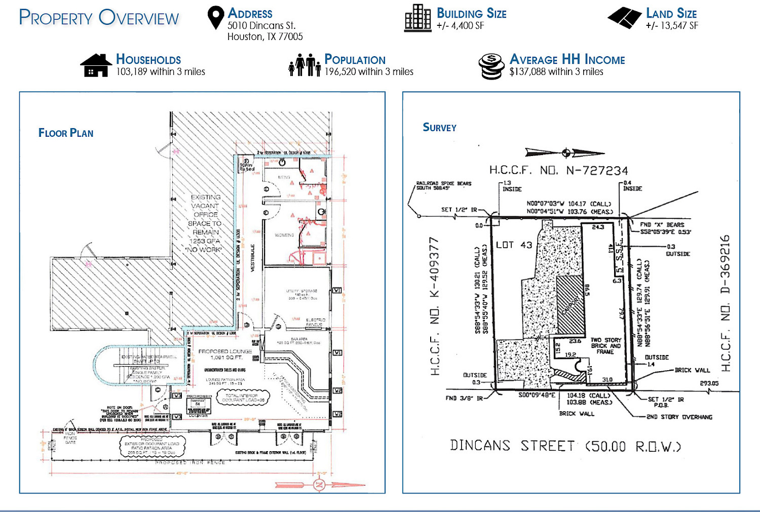 - Improvements: +/- 4,400 SF 2-Story Building
